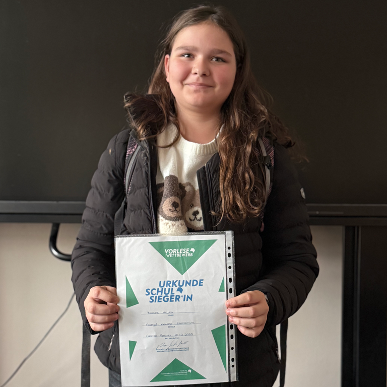 Zunächst wurde innerhalb der eigenen Klasse anhand eines selbstausgewählten Textes der stärkste Leser bzw. die stärkste Leserin der Klasse ermittelt. Im Anschluss daran wurde dann zwischen den Klassensiegern/ Siegerinnen der Schulsieger gekürt. In einem spannenden Leseduell konnte sich Yvonne aus der 6d durchsetzen.